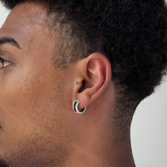Black Baguette Earrings Plata