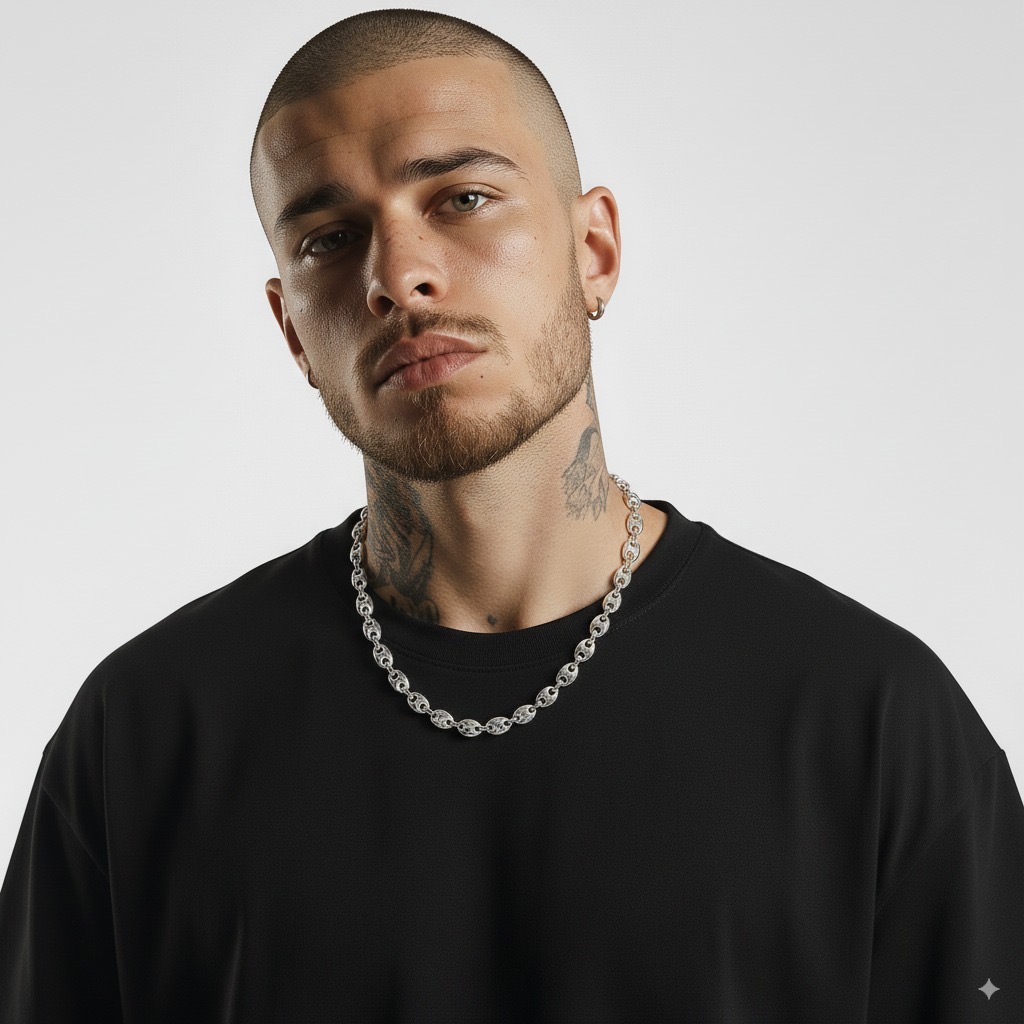 Chain made of .925 sterling Italian silver weighing over 15 grams and 5mm in diameter.