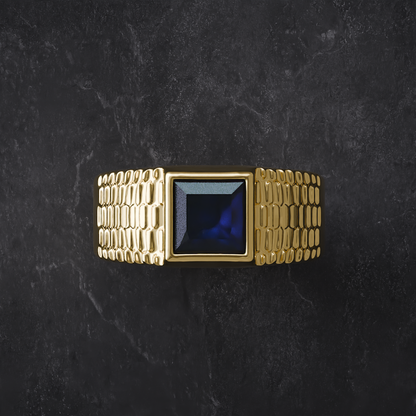 Un anillo distinto y perfecto para que sea la joya que destaque en cualquiera de tus combinaciones. Hecho de acero inoxidable chapado en oro de 18k, este anillo está coronado por una gema grande y brillante que hace que se distinga de cualquier otra pieza similar.