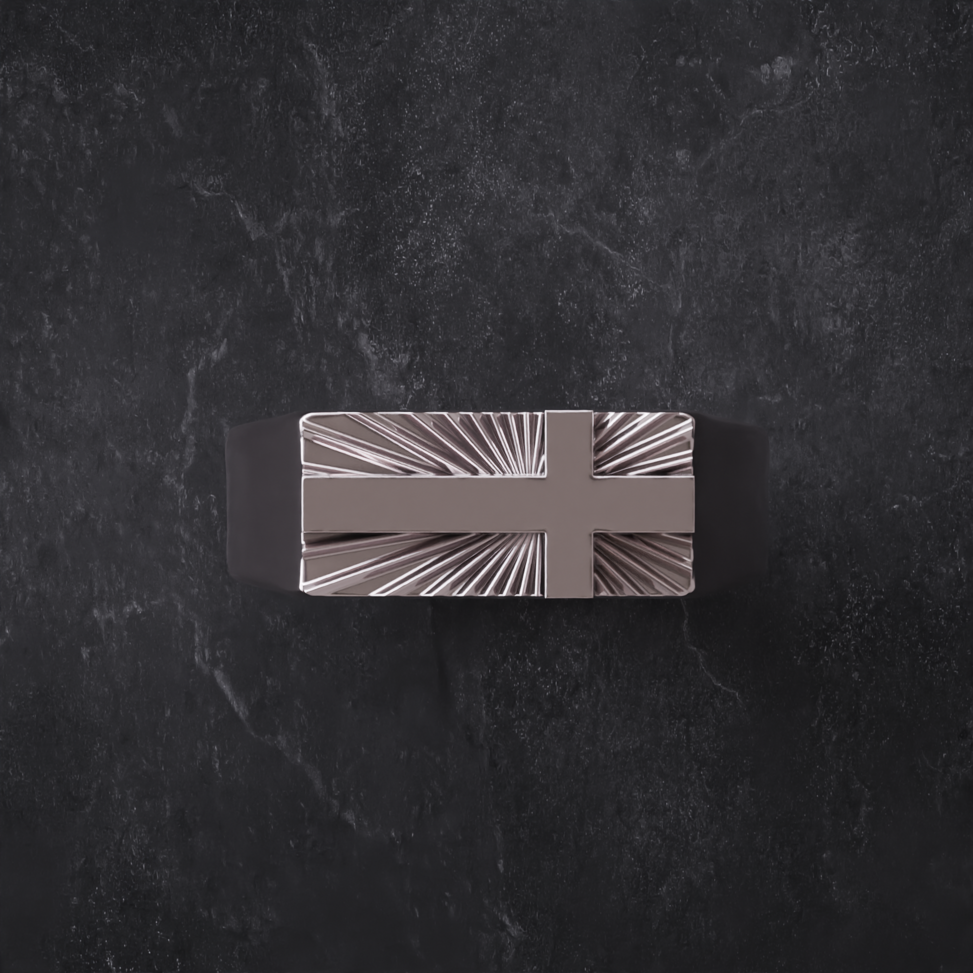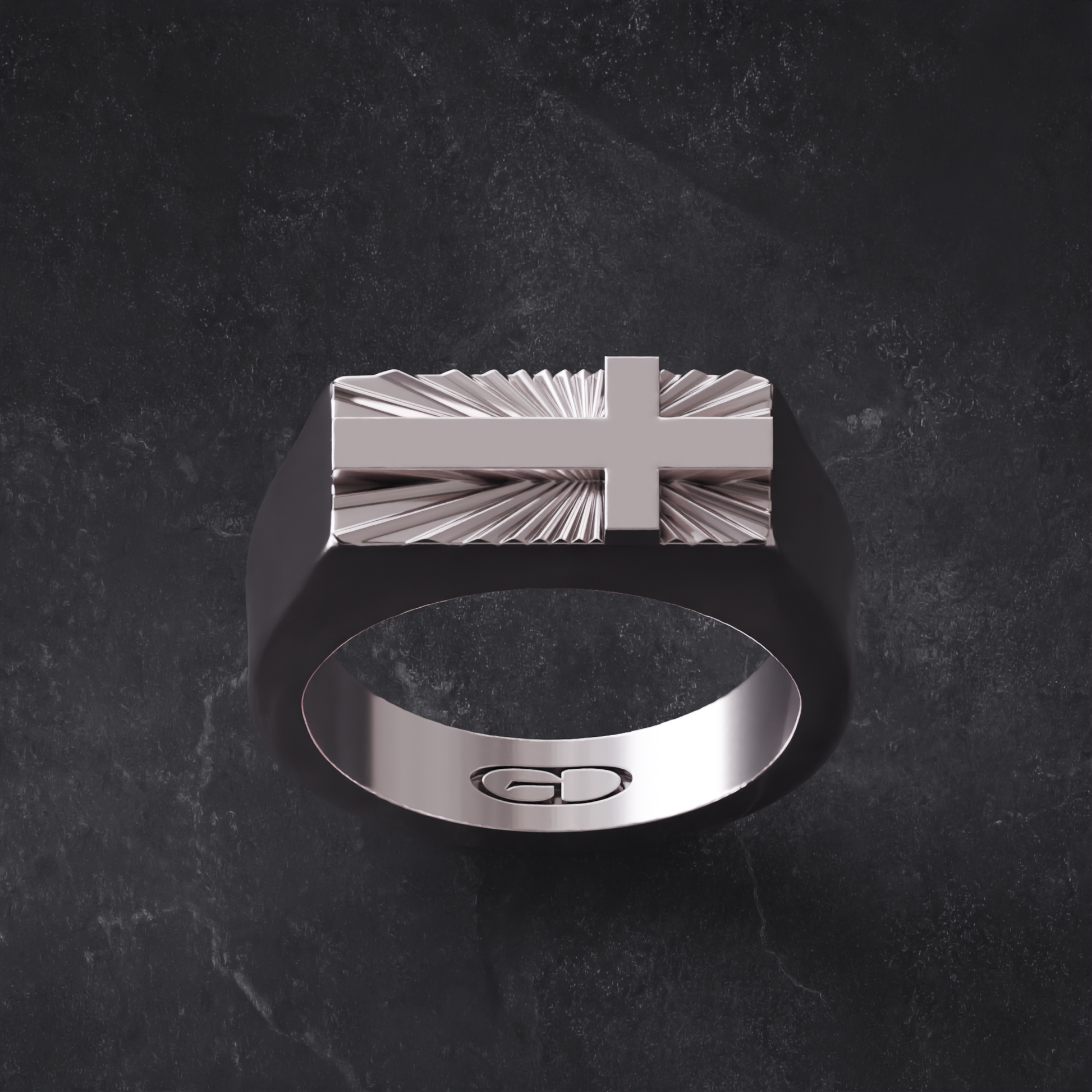 Un sello con un toque personal, dejando los estilos básico a un lado para incluir una cruz coronando esta pieza, que le da vida y personalidad a la pieza. Está hecho de acero inoxidable y chapado en oro de 18k, lo que hará que resista al agua, sudor... lo que sea, además de que mantendrá su calidad y color con el paso del tiempo.