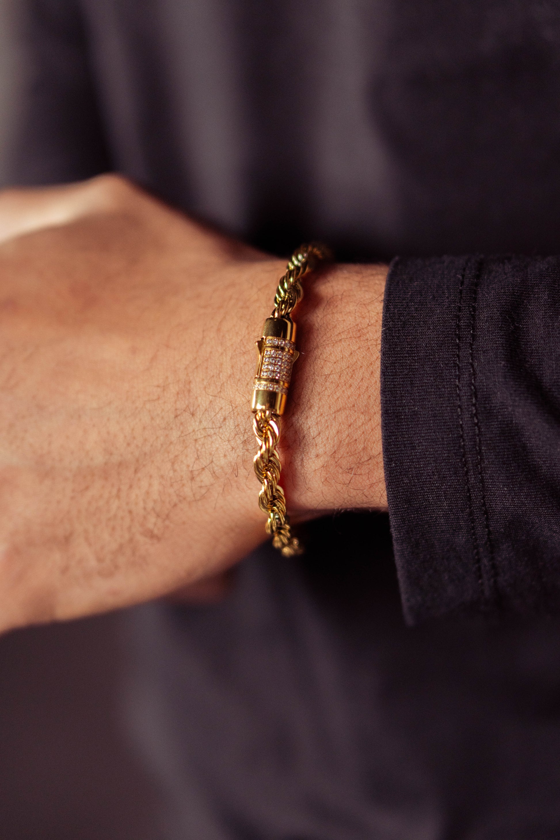 En este diseño hemos querido darle un toque de sofisticación a una de nuestras pulseras bestseller, la rope chain bracelet de 6mm. Una pulsera básica he imprescindible hecha con materiales de calidad: acero inoxidable chapado en oro de 18k, pero añadiéndole circonitas en le cierre para darle brillo y distinción, haciendo de esta pulsera un imprescindible.