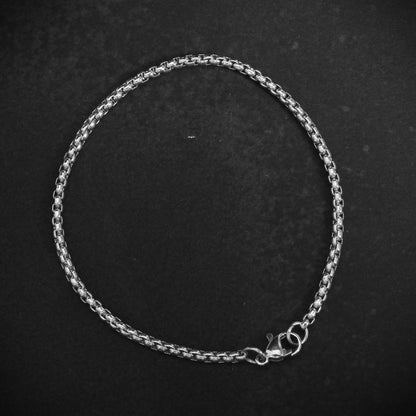 Una pulsera perfecta para llevar a juego con tu box chain. Un enlace sencillo y clásico, perfecto para los que les gustan las pulseras discretas. Está hecha de acero inoxidable y chapada en oro de 18k, con lo que no perderá color y durará de por vida.