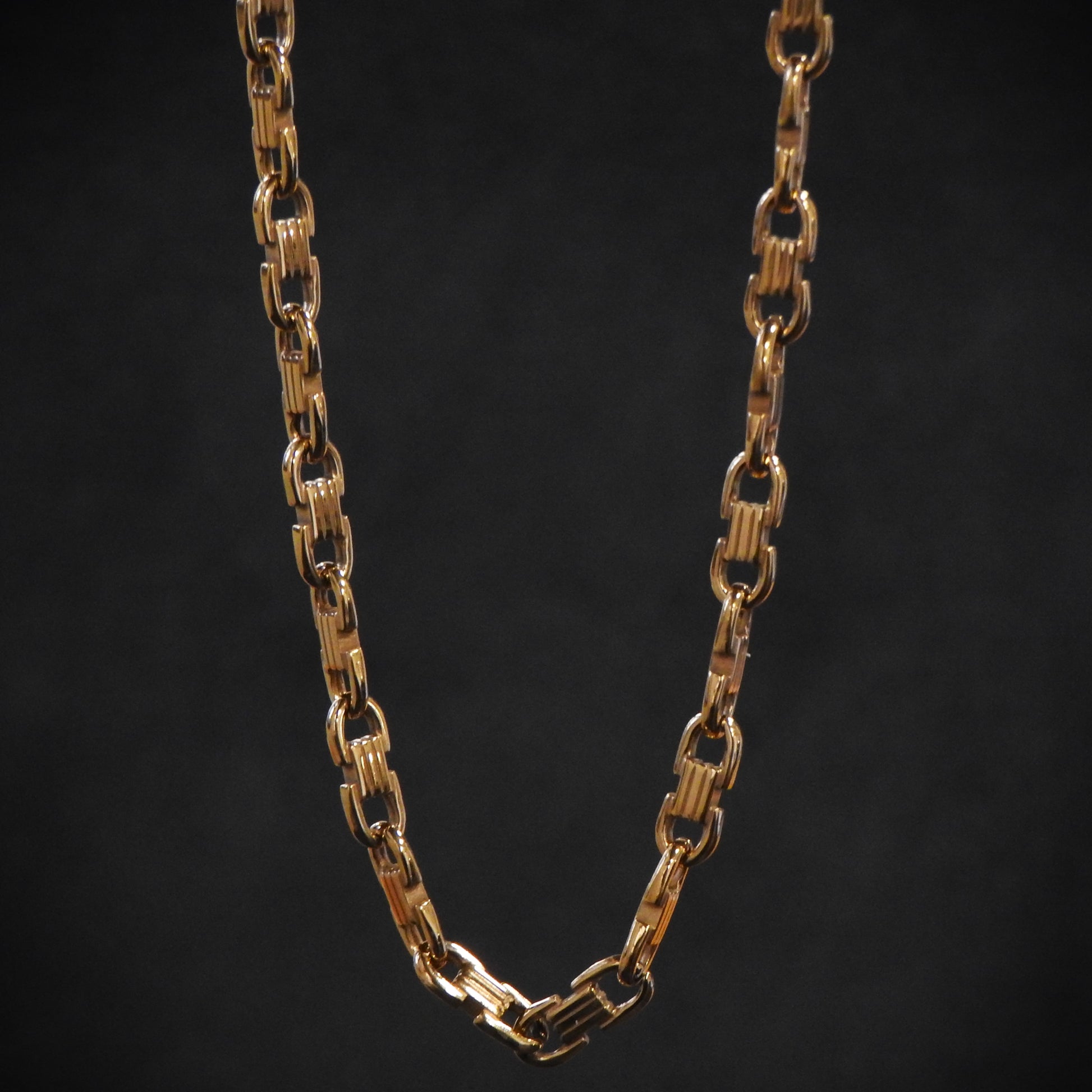 Esta cadena de eslabón marina, de 6mm de grosor, está hecha de acero inoxidable chapado en oro de 18k. Un enlace clásico y unos materiales de gran calidad, que hacen de esta cadena una pieza imprescindible para los que les gustan las cadenas con diseños diferenciales.