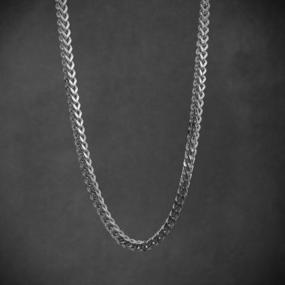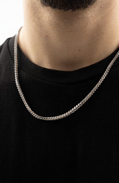 Un clásico de la joyería. Esta cadena franco de 3mm está hecha de acero inoxidable y chapada en oro de 18K en su versión dorada, es perfecta para combinar con cualquier pieza, además de que por sus características y materiales nunca perderá color.