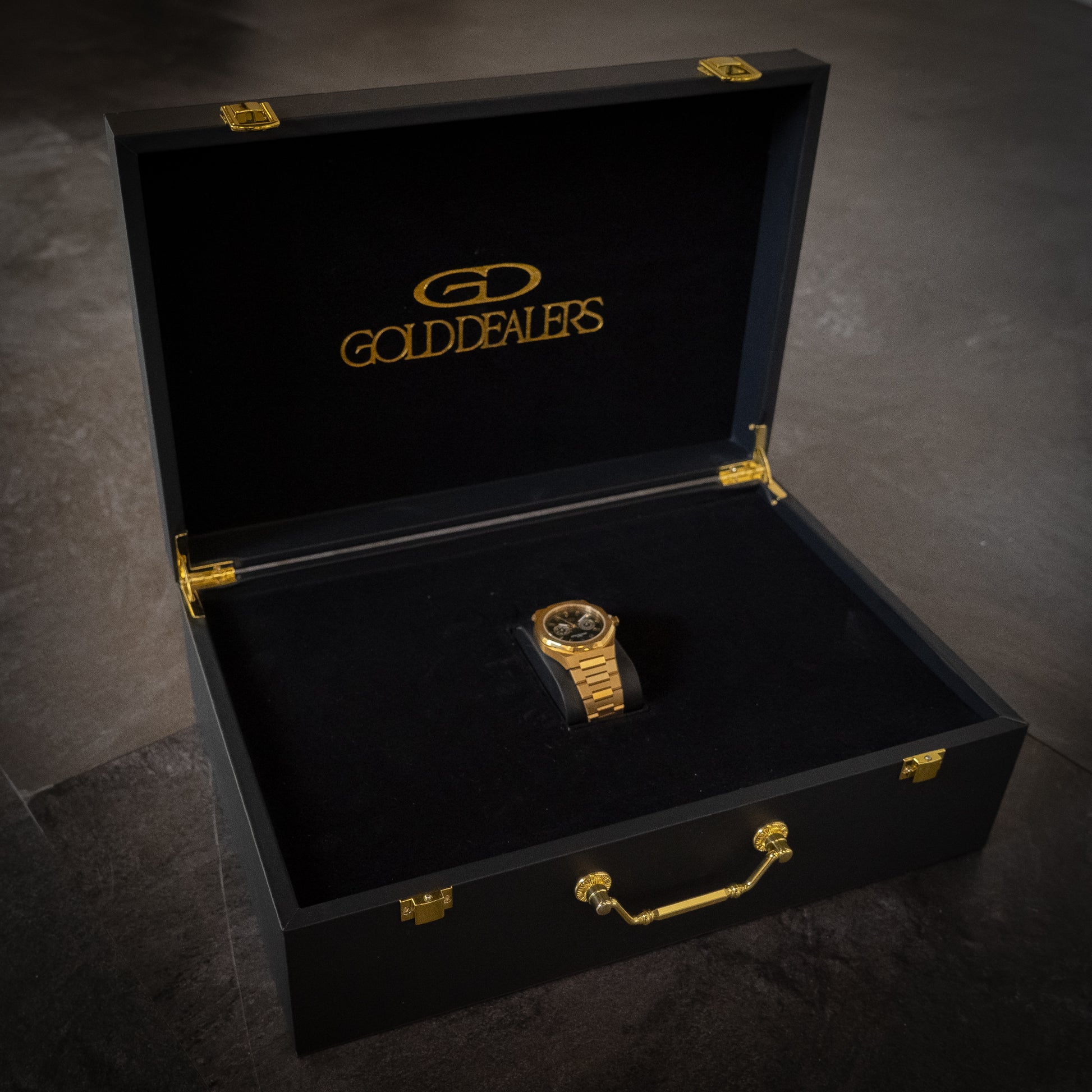 Este magnífico reloj refleja el espíritu de nuestra marca, la conexión entre la elegancia, el lujo y, sobre todo, el oro. Está hecho de acero inoxidable y chapado en oro de 18K, tanto en la caja de reloj como en la correa. Entre sus características encontramos dos cronógrafos chapados en oro de 18K en el interior del dial, un movimiento japonés, además de que es resistente al agua hasta 50 metros de profundidad. Pídelo hoy y tendrás garantía de por vida donde te solucionaremos cualquier problema que puedas tener con él.